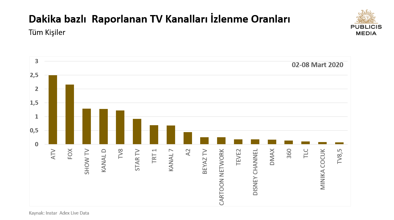 - Dakika bazlı raporlanan kanalların izlenme oranları sıralamasında ATV 1. Fox 2. SHOWTV ise 3. sırada yer aldı.